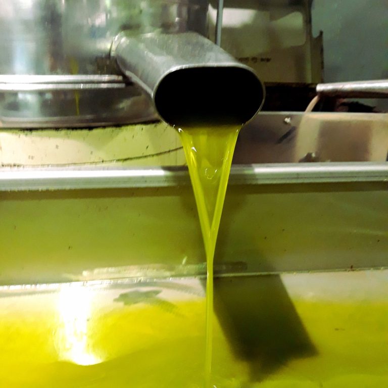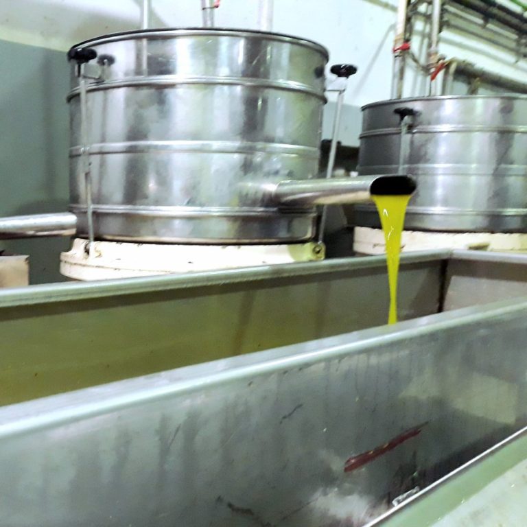 Das Olivenöl fließt direkt aus der modernen Zentrifuge. Dieses Verfahren ist schonender als die alte hydraulische Presse und garantiert höchste Qualität. Das Öl ist frei von Zusatzstoffen und behält seinen natürlichen, fruchtigen Geschmack. Der Kontakt mit Sauerstoff wird minimiert, was die Qualität zusätzlich sichert.